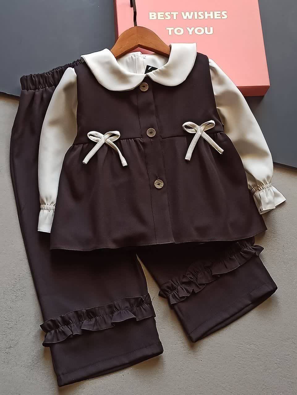 سایز ۲: قد شومیز ۵۰ پهنا ۳۶ قد آستین از سرشانه ۳۸ قد سارافون ۴۴ پهنا سارافن ۳۷ قد شلوار ۷۳