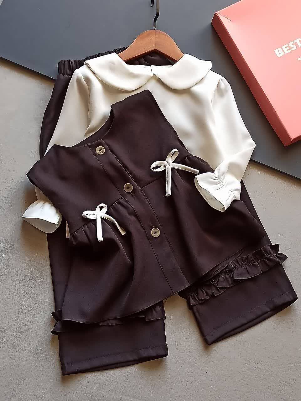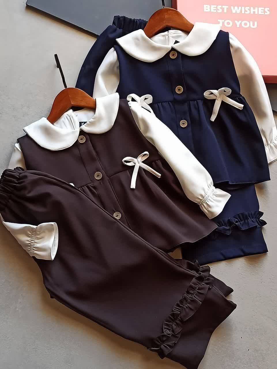 سایز ۳: قد شومیز ۵۲ پهنا ۳۷ قد آستین از سرشانه ۴۲ قد سارافون ۴۸ پهنا سارافن ۳۹ قد شلوار ۷۷