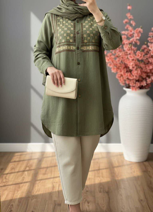 🌱قسمت یقه گلدوزی داره که خیلی قشنگ و شیکه