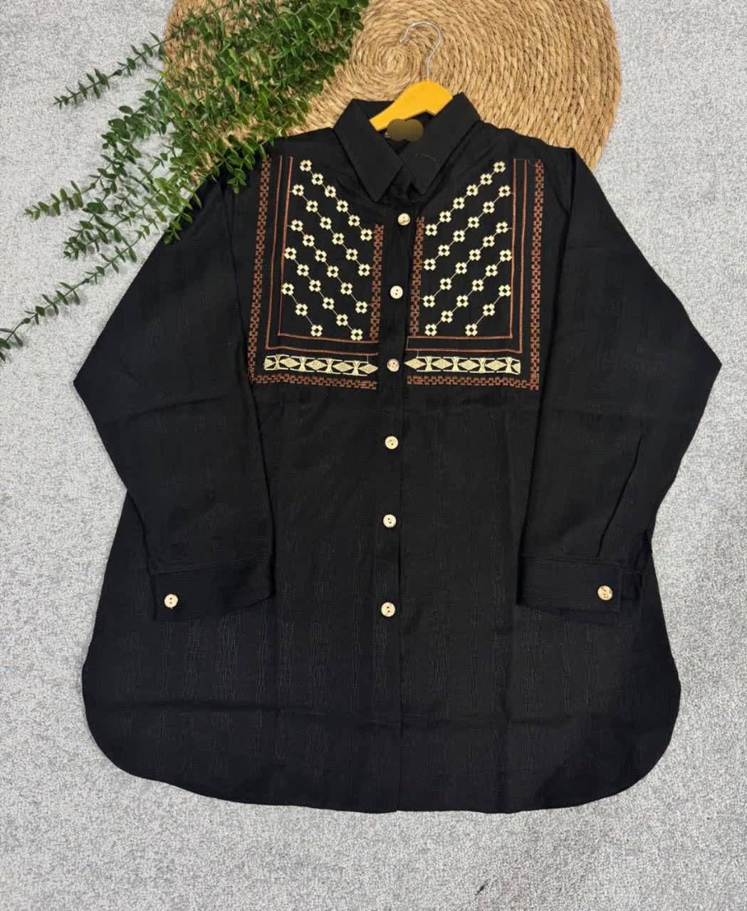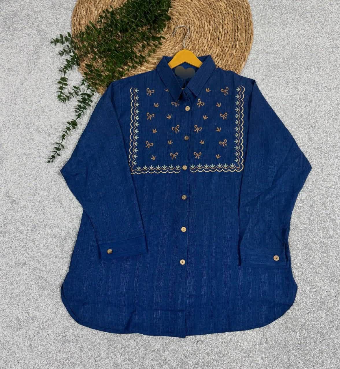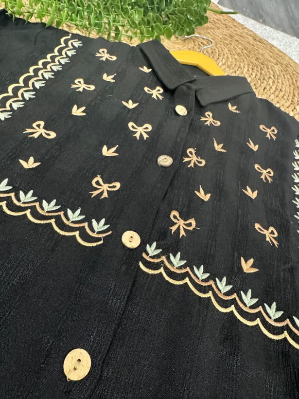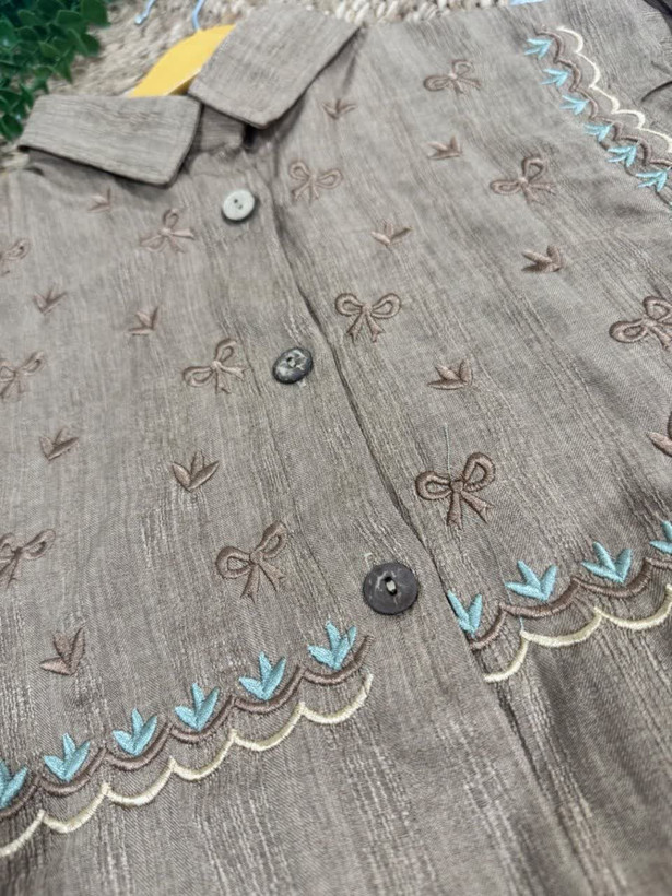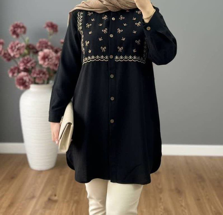 📋 توضیحات: مانتو گلدوزی در دوطرح شاخه ای وپاپیونی